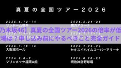 この記事では、乃木坂46『真夏の全国ツアー2026』の概要、チケット倍率が低いと予想される穴場会場、そして申し込み前にファンがやるべきことについて詳しく紹介します。ついに来ましたね、この季節が!2026年2月23日、乃木坂46のデビュー記念...