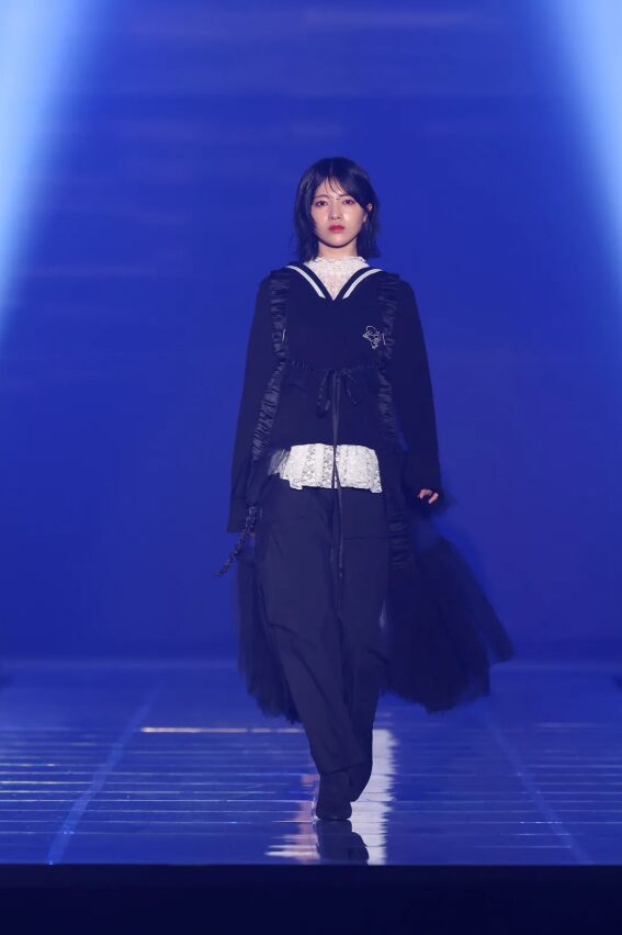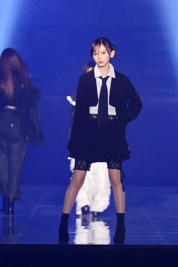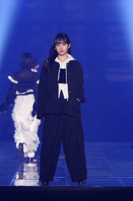 賀喜遥香ちゃんは、華のある笑顔と誠実なオーラでランウェイを闊歩し、その場にいるだけで安心感を与える存在感でした。