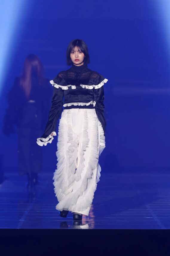 中西アルノちゃんは、凛とした表情と特有のミステリアスな雰囲気がファッションと見事に調和していました。